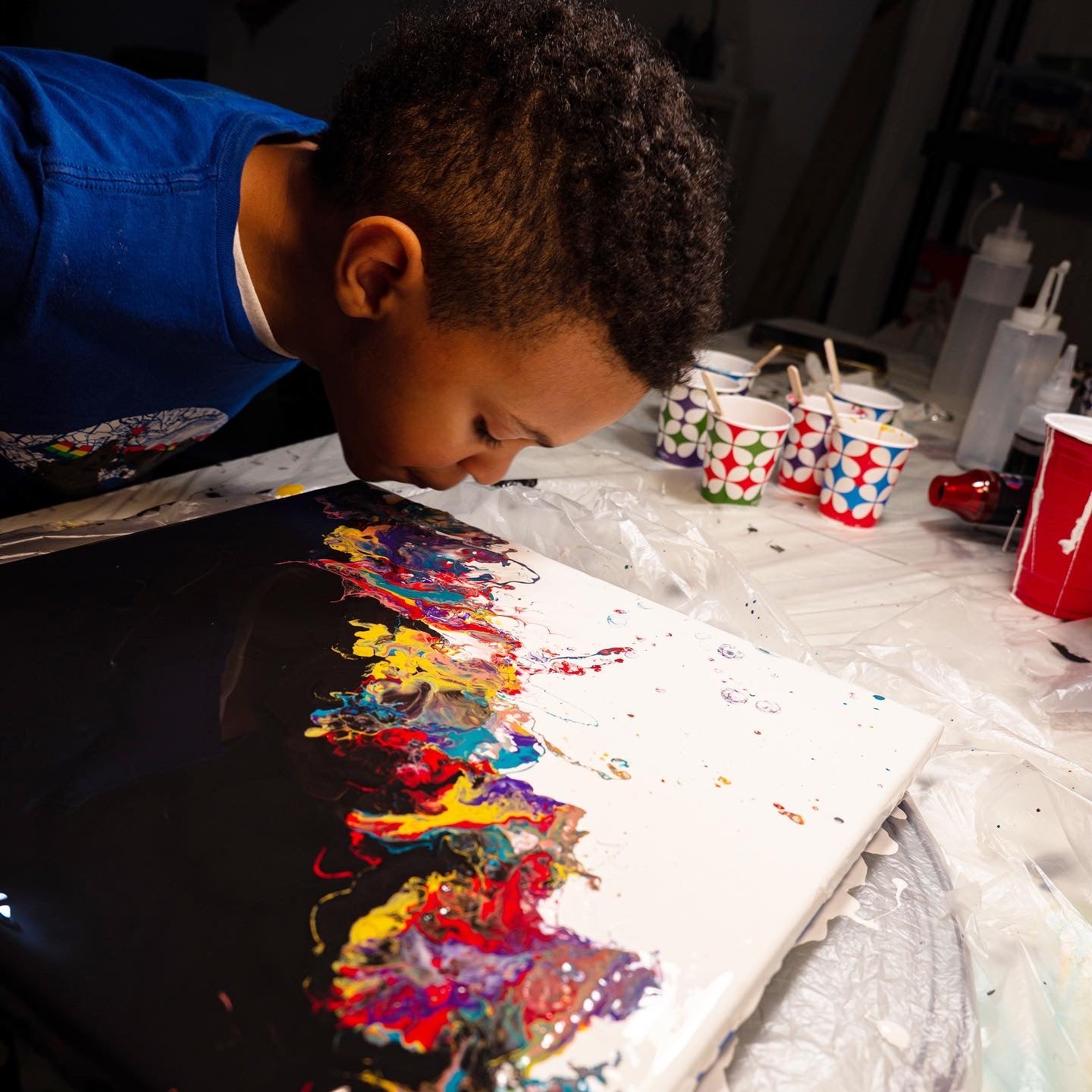 What started as simple sensory play became Liam’s favorite way to communicate and explore. Through colors, textures, and motion, he developed a deeper understanding of emotion, pattern, and rhythm. Painting became a place where he could express himself freely, without rules or pressure.